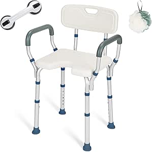 Greenchief Shower Chair With Back And Arms Bathtub Lift Chair With Handles Removable Free Assist Grab Bar Medical Tool Free Shower Cutout Seat For Disabled Handicap Seniors Elderly 300lb Health Household Amazon Com